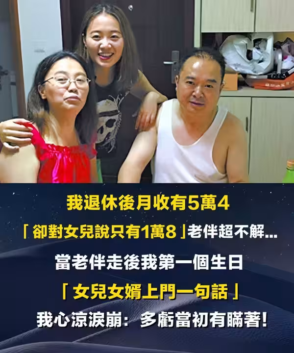 退休後「月收入五萬四」 我對女兒說只有一萬八,過生日「女婿上門一句話...」我心涼:多虧當初隱瞞