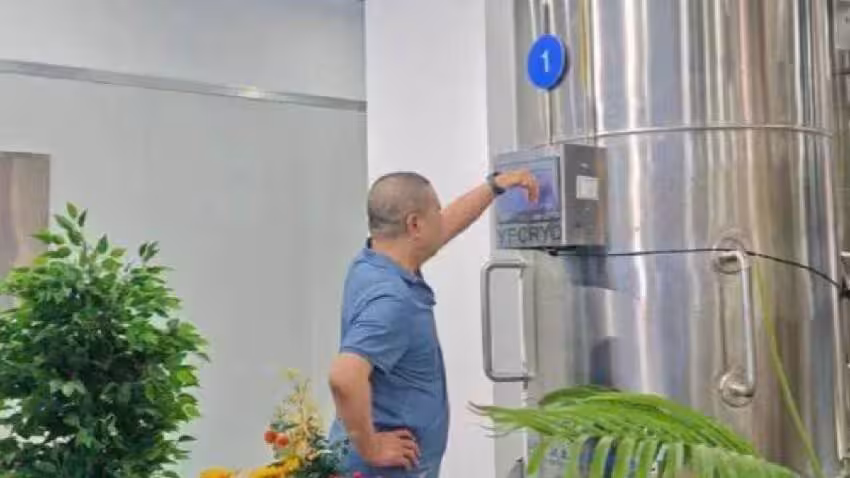 桂軍民站在儲存著「冷凍人」展文蓮的液態氮罐前。