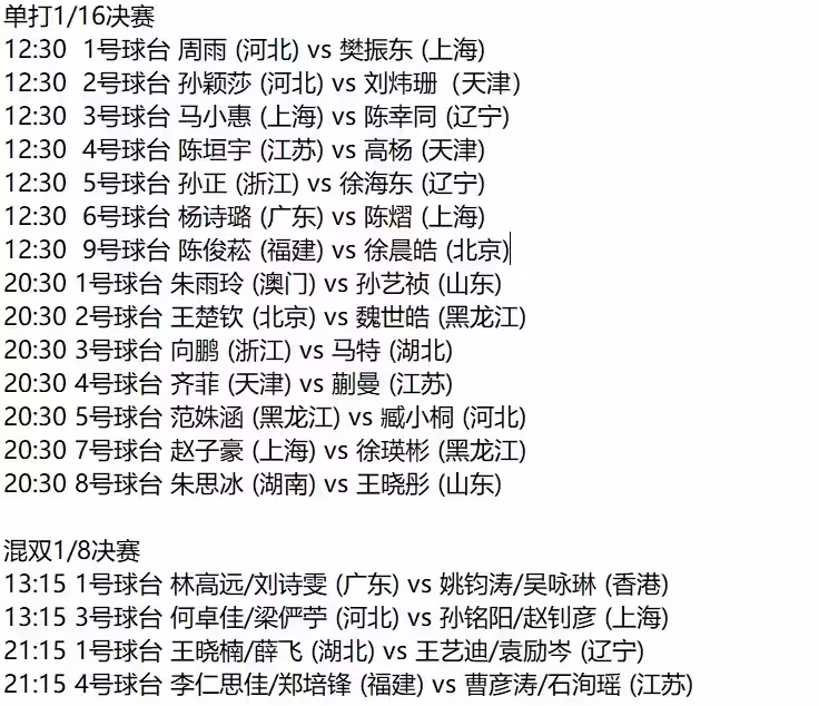 當晚20時30分,北京隊核心王楚欽登場亮相,將在2號球檯對陣黑龍江選手魏世皓,而前國乒主力、現代表中國澳門出戰的朱雨玲也迎來了挑戰,對手是山東孫藝禎。