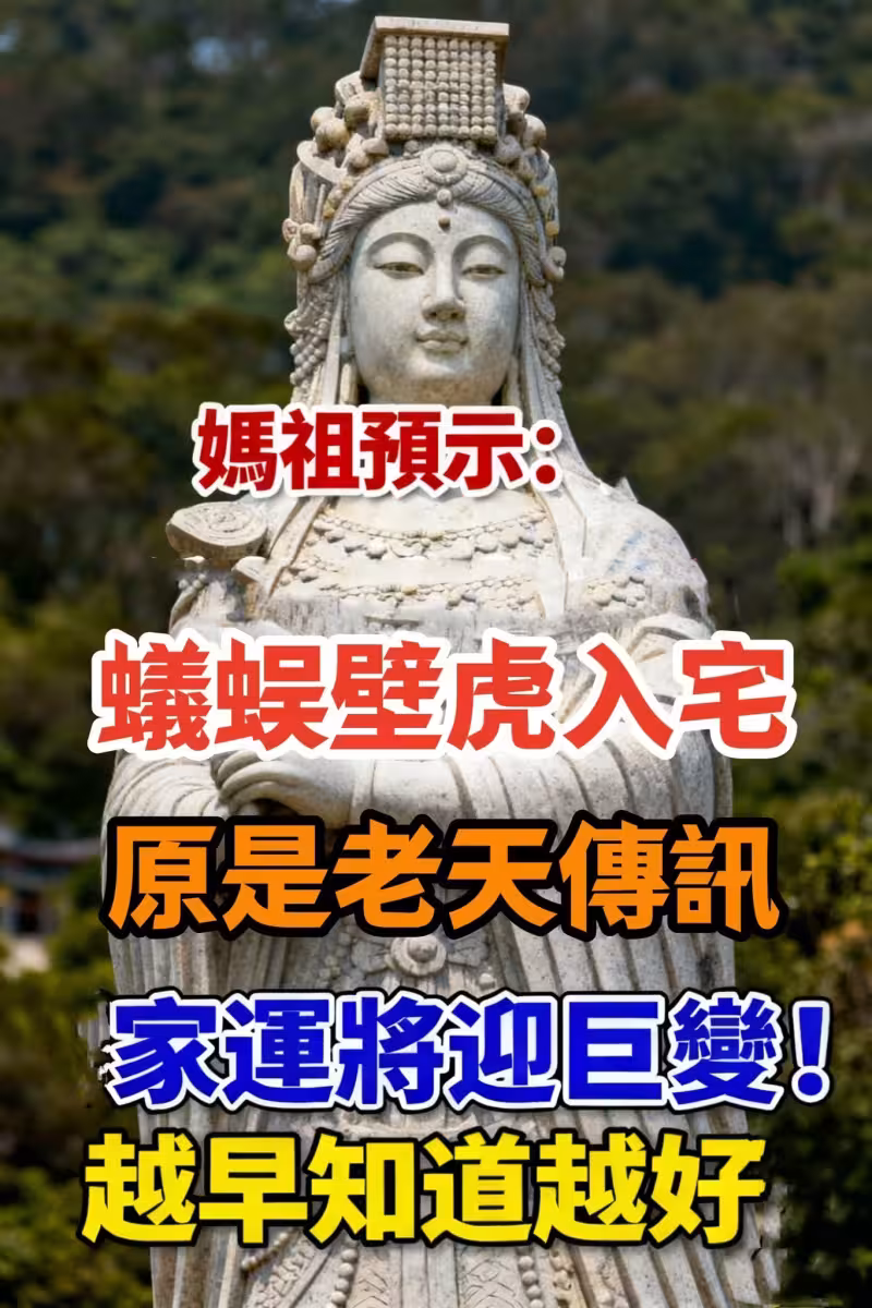 媽祖預示:蟻蜈壁虎入宅 原是老天傳訊 家運將迎巨變 越早知道越好。
