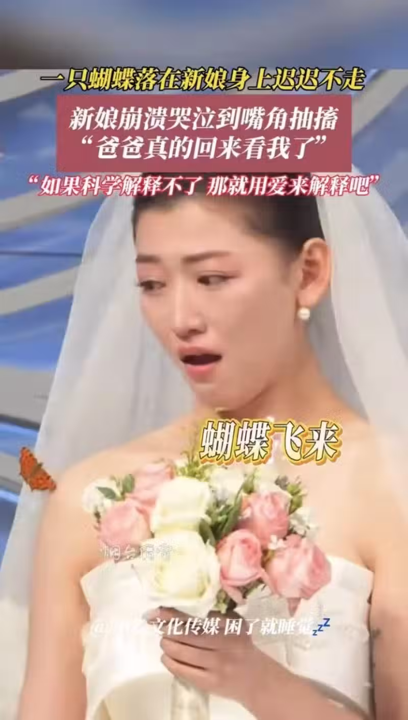 婚禮上,「一隻胡蝶死守新娘」 遲遲不走「新娘愣3秒」當場淚崩顫喊:今天他的真來了