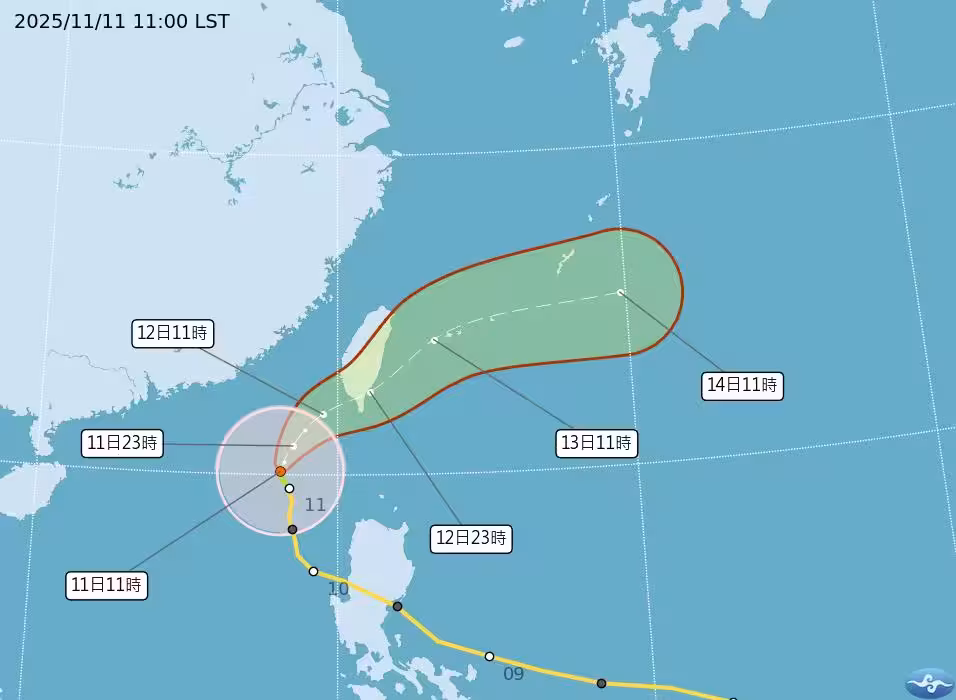 吳聖宇說,周四清晨過後颱風進入東部海面,並且應該已經減弱為熱帶性低氣壓,殘餘水汽配合東北季風再度移入,迎風面北部、東北部一帶在周四清晨到中午前這段期間可能會再有一段雨勢跟風力增強的情況,不過因為颱風已經是強弩之末,風雨雖有但應該影響程度也較為有限,周四下午到晚間逐漸歸回到比較典型正常的較強東北季風影響天氣,迎風面有局部降雨,雨勢趨緩,沿海郊區則持續有較強的陣風發生機會。中南部還有花東一帶在颱風出海減弱後可望快速恢復多雲的天氣,這個季節的颱風好處就是通過遠離之後天氣好轉的情況會比較直接了當,通常不會再有拖拖拉拉雨下不停的狀況出現。