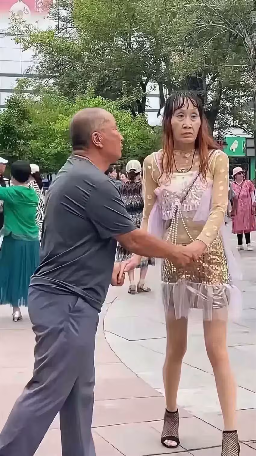 然而,隨著舞步的旋轉,當這位「靚女」輕輕轉身,露出她的正面時,整個廣場的氣氛突然一滯——人群中傳出幾聲輕微的驚呼,原本的讚美聲瞬間轉為了難以置信的竊竊私語。
