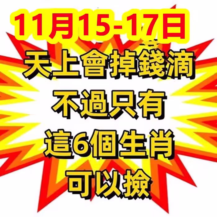 11月15~17日天上會掉錢滴,不過只有這6個生肖可以撿
