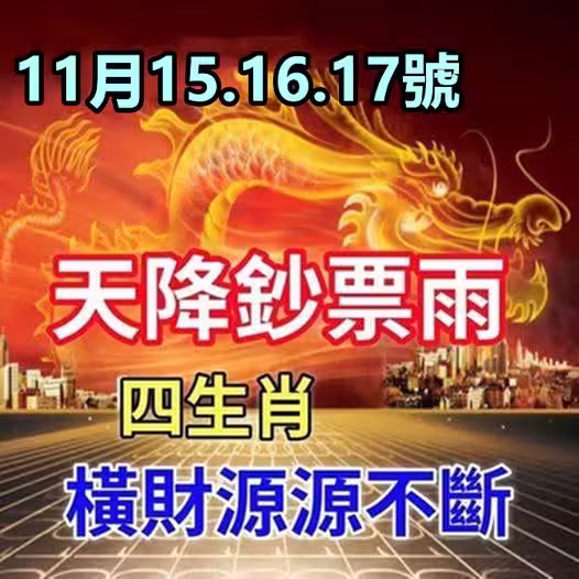 11月15.16.17號天降鈔票雨,四生肖橫財源源不斷!