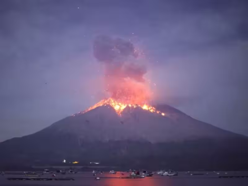 據日媒《南日本放送》報導,日本氣象廳資料顯示,櫻島南嶽山頂火口於16日凌晨0時57分發生爆炸性噴發,這是自去年10月以來噴煙高度首次突破4000米。本次噴發為今年第148次,現場觀測到明顯的空氣振動現象。隨後火山活動持續,上午8時50分再度噴發,噴煙高度約2500米。