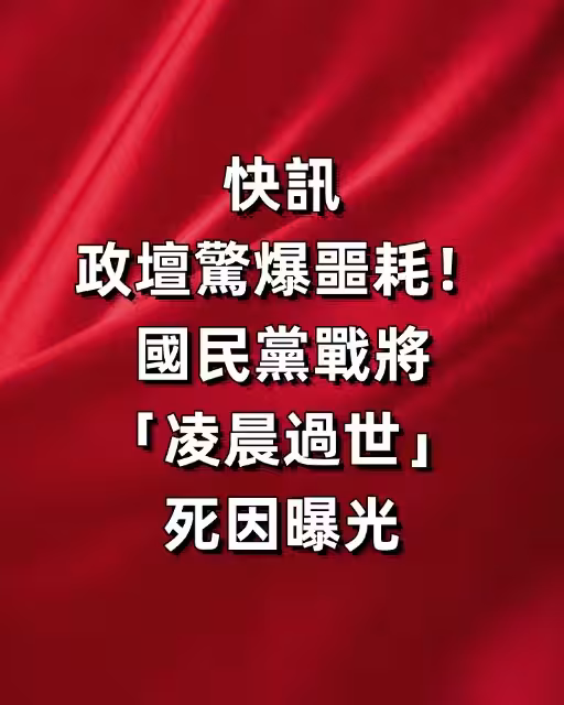 政壇驚爆噩耗!國民黨戰將「凌晨過世」死因曝光 生前遺願「支持兒子選立委」