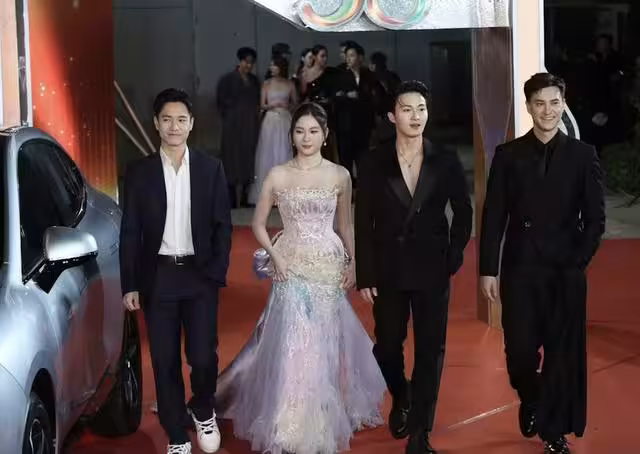 一班女藝人們在爭奇鬥豔的同時,個別男星也是非常搶鏡,其中最引人注意的一定是力捧小生周嘉洛了,他當天穿著一身黑色的西裝,最大的亮點當然是真空上陣,胸肌更是若隱若現,不僅讓與其一同走紅毯的女星感到驚艷,就連周嘉洛的好友朱敏瀚也是忍不住多看幾眼。