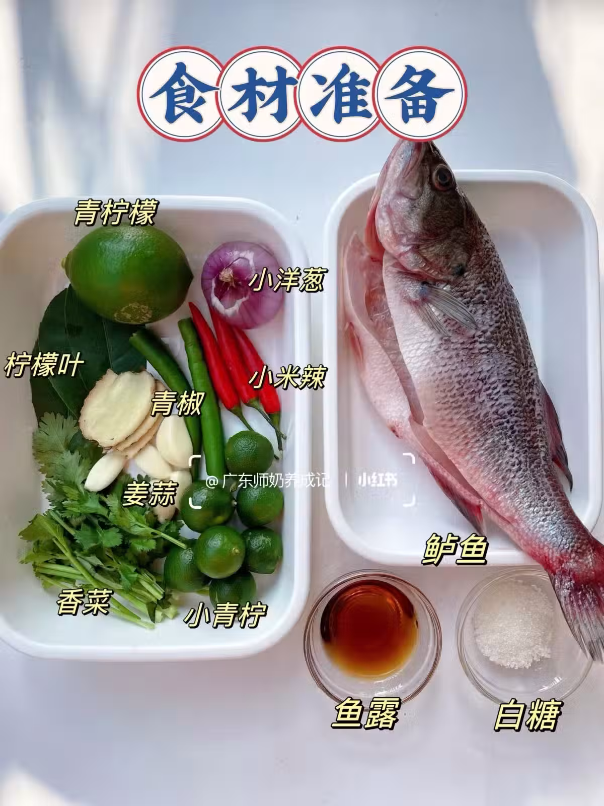 ✅水開後,放入鱸魚大火蒸10分鐘,夾出薑片倒掉蒸出來的水,淋上調好的泰式酸辣汁,加入檸檬片裝飾即可