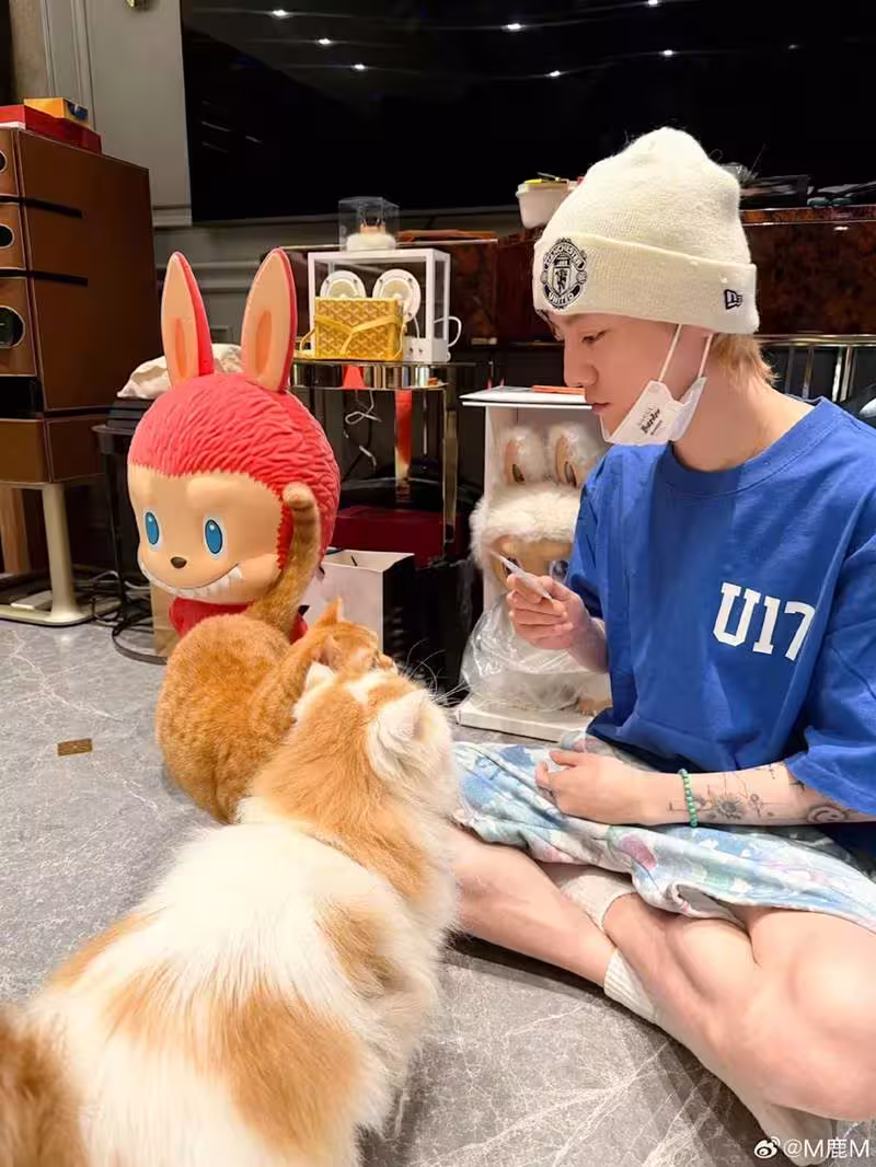 除設備與擺設外,鹿晗此次分享的日常生活也受到粉絲關注,其中,他用精緻麵包刀切油條的畫面細節,被網友笑稱是「把街邊早餐吃出法式儀式感」。鹿晗同時也在貼文中寫下「饅頭不能再吃了」,起初不少粉絲以為他在談食物,直到畫面角落出現一隻戴棒球帽、身材圓滾的狗,大家才明白「饅頭」其實是寵物的名字,另外,鹿晗的家中還飼養兩隻貓咪。