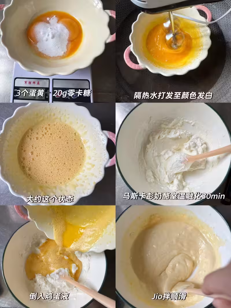 3️⃣淡奶油打發至酸奶狀,和馬斯卡彭奶酪糊攪拌均勻