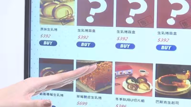 記者盧怡撰說:「通常您想到盲盒,可能覺得會是公仔或者是扭蛋,但現在就連「生乳卷」也都有盲盒。」蛋糕販賣機點選盲盒掃描QRcode,一整盒蛋糕掉了出來,看看這包裝打上了個大大的問號,得拉開紙盒口味才會出現,而現在討論度最高的這款,你吃的出來嗎。