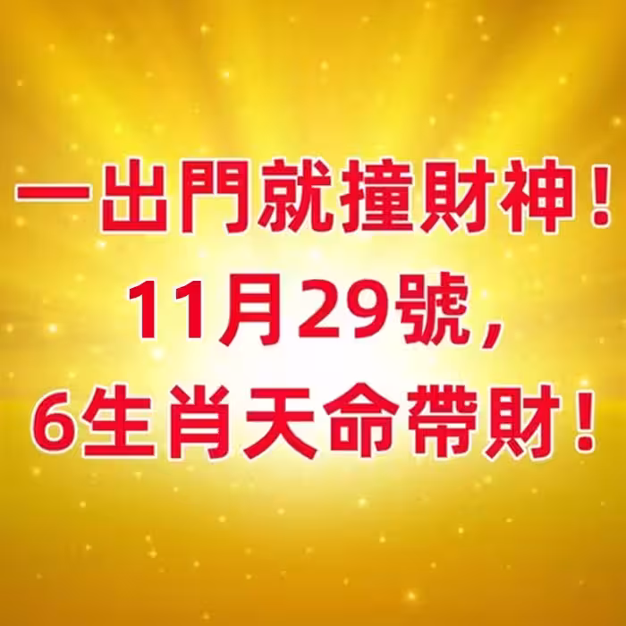 一出門就撞財神!11月29號 ,6生肖天命帶財