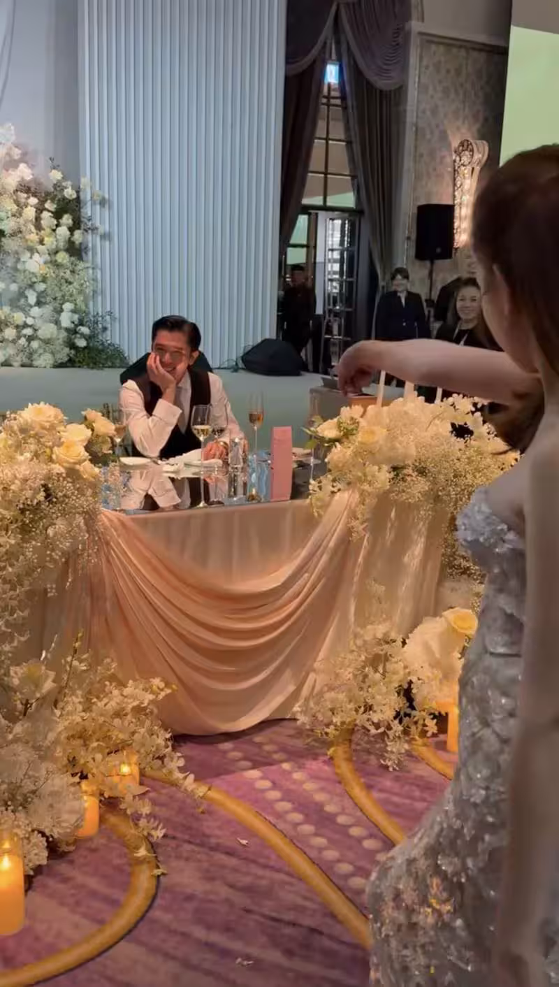 最甜的瞬間落在歌曲唱到「你是我烏暗的心唯一的光」這句時,許瑋甯突然用手指先指向邱澤,再指向自己,像在舞台上公開示愛。邱澤看著老婆玩得開心,全程用手托著臉、笑得像被融化,眼神完全離不開她,寵妻畫面讓現場賓客全都融化,最後邱澤也High了,拿起麥克風上台開唱。
