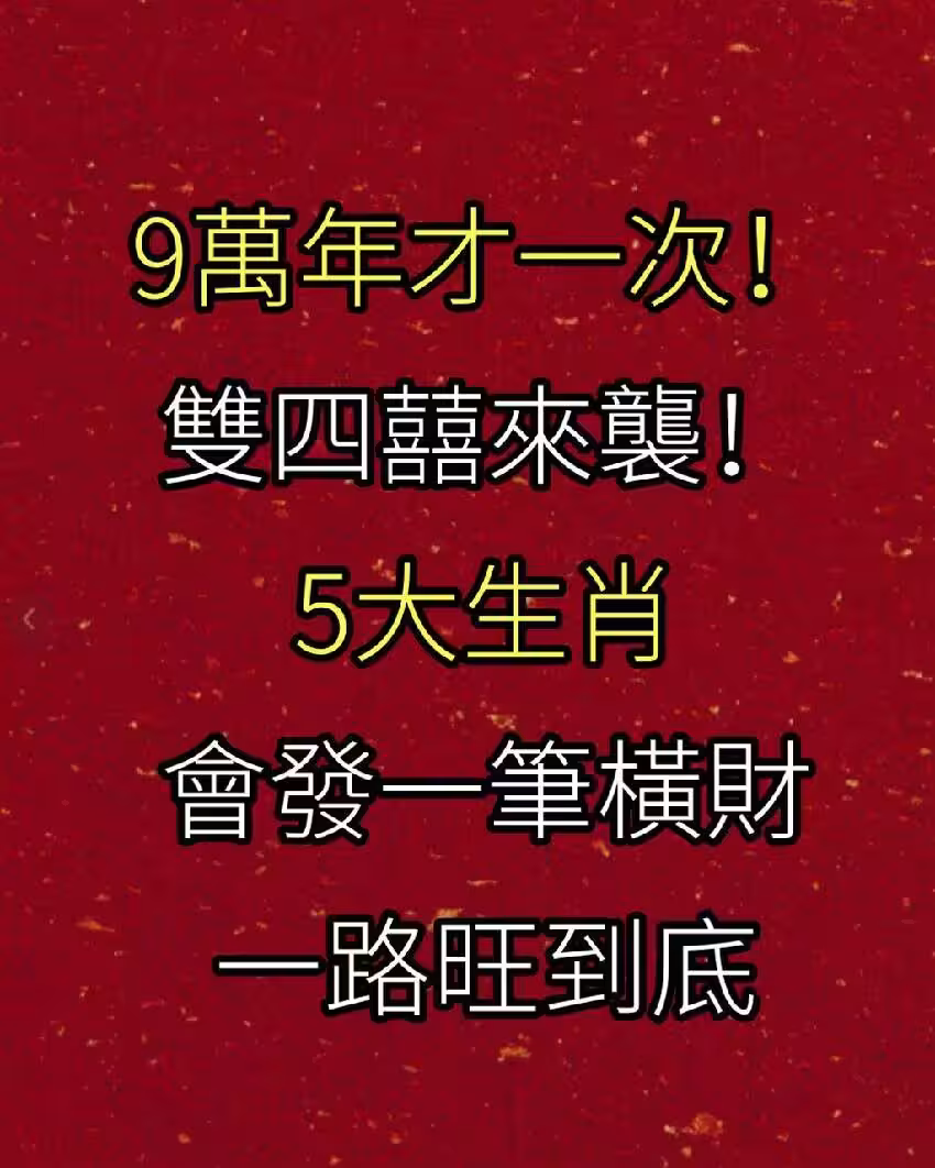 9萬年才一次!雙四囍來襲!5大生肖會發一筆橫財,一路旺到底