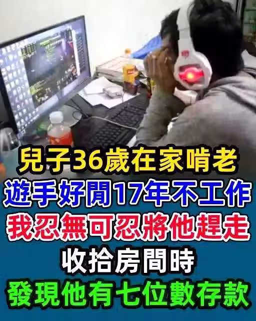 整天把自己關在房間打遊戲,17年來從不工作,靠著我們的退休金過活。