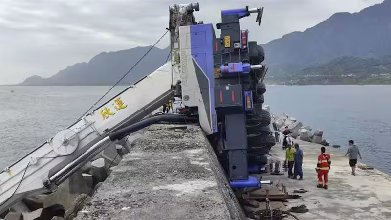 到底是強風因素或支撐腿配重疏失,事故原因仍在調查中。據了解,死者是高雄美濃的客家人,育有兩個兒子,具備40年豐富的吊車操作經驗。他於1996年自行創業開設工程行,擔任老闆,已在台東進行消波塊工程施作3至4年。