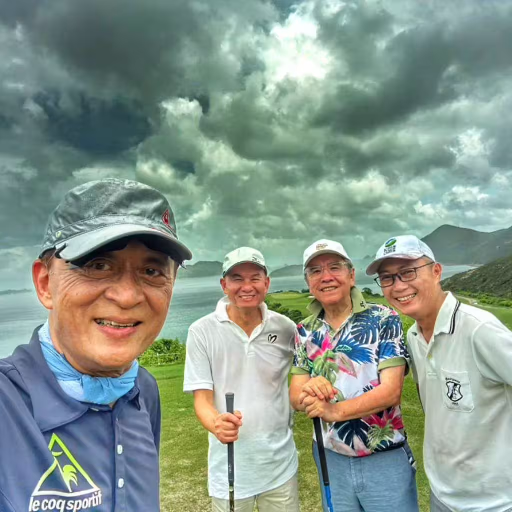 姜大衛發文:「在這種天氣下打高爾夫,被間中有陽光下差點曬傷」,不少網民見到四人被曬到臉紅,叮囑要塗防曬及保重身體。