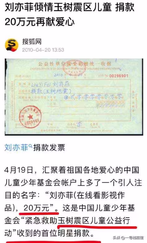 其實這不是劉亦菲第一次默默捐款,早在玉樹震情的時候她就默默捐錢了,而且還是第一個捐錢的明星,