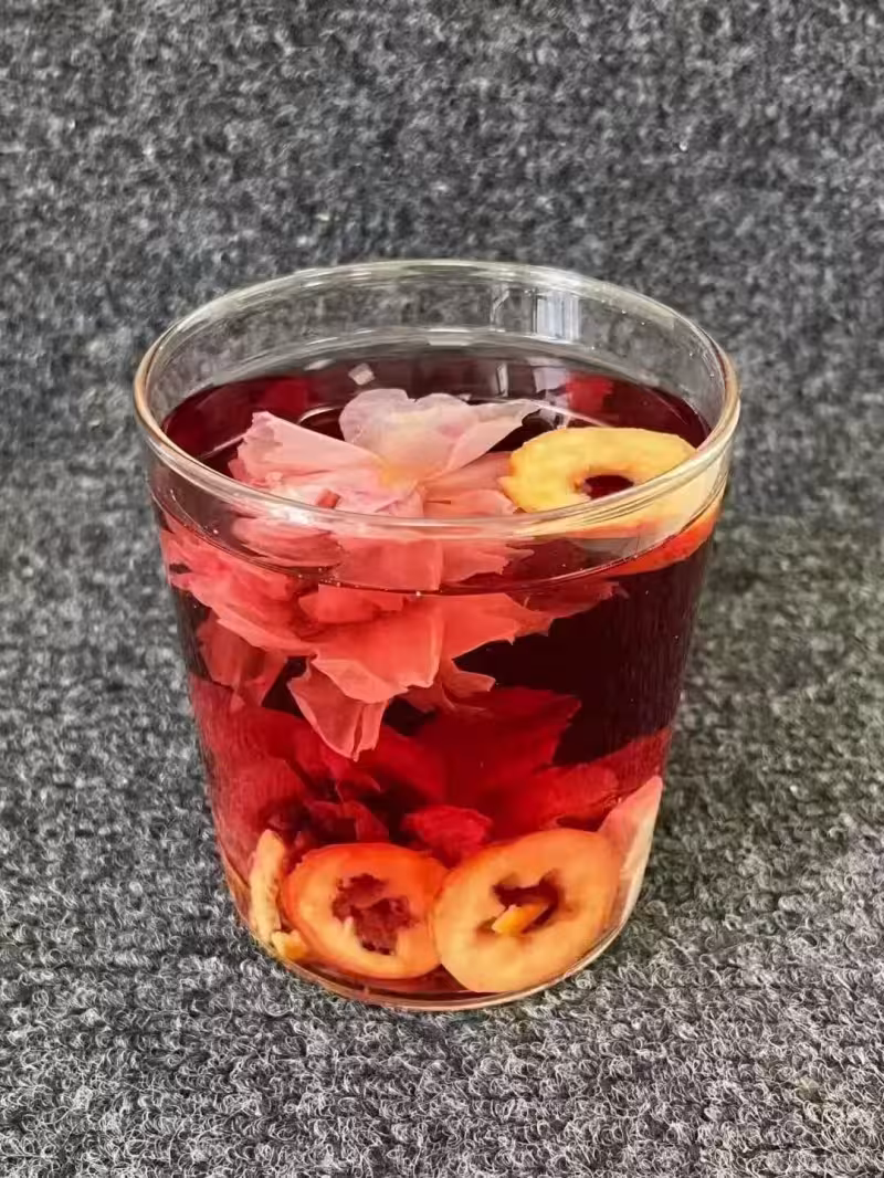 烏梅、桑甚、山楂、玫瑰、陳皮、茯苓