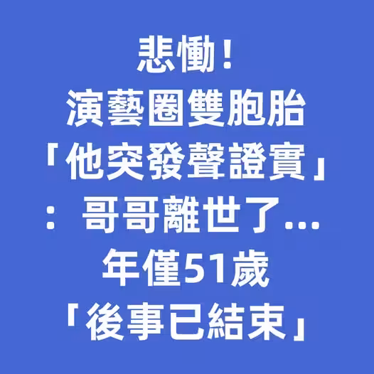 悲慟!!! 演藝圈雙胞胎「他突發聲證實」哥哥離世了... 年僅51歲「後事已結束」