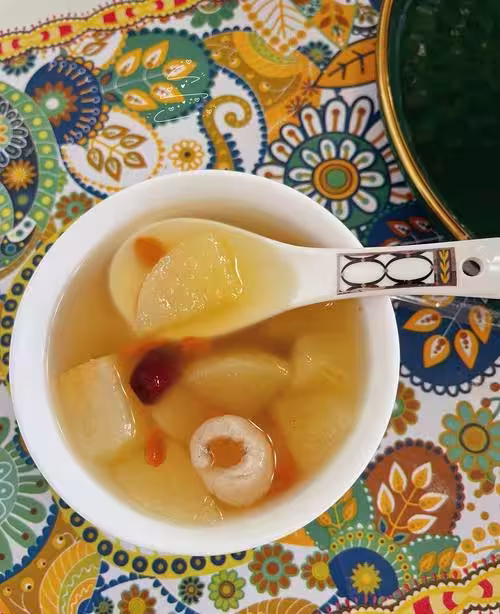 雪梨切塊燉更入味;紅糖不宜放太多,以免太甜;燉好的甜湯趁溫熱喝,效果更好。剩下的可以放冰箱,第二天加熱溫飲。