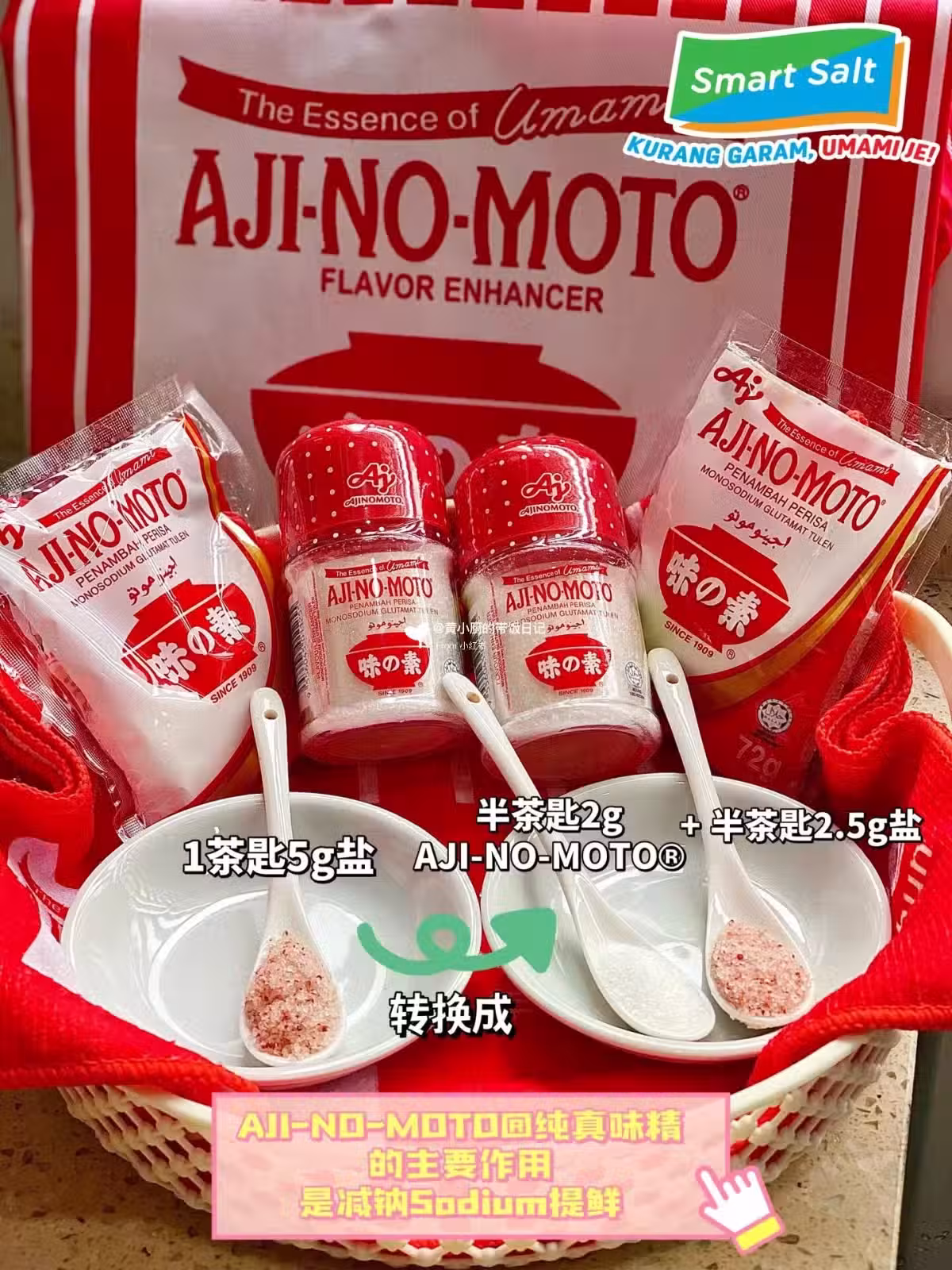 適度合理地使用AJI-NO-MOTO®️純真味精在調味與健康之間並不矛盾。Smart Salt,Less Salt,Umami je!