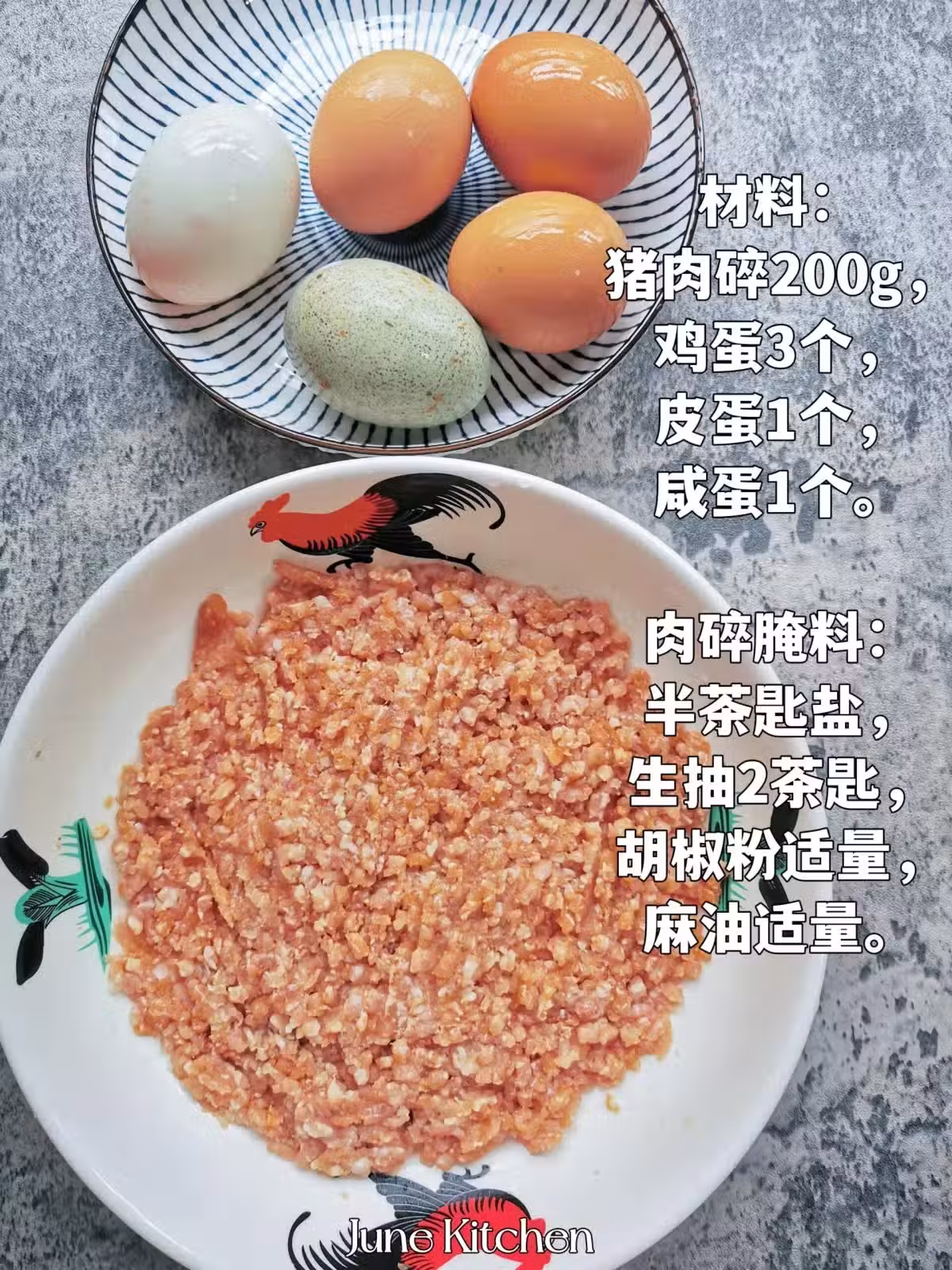 1️⃣雞蛋和鹹蛋白一個共約200ml,清水300ml。