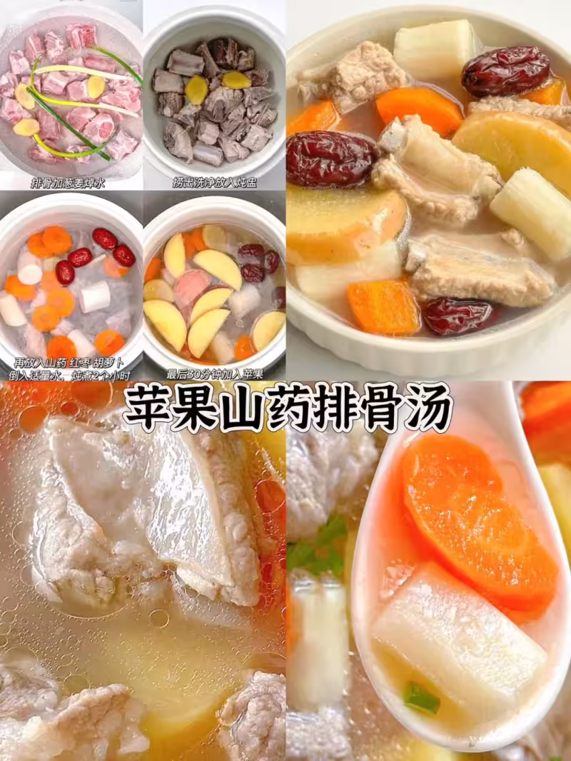 結果驚艷!🍎蘋果的果香中和了排骨油膩,湯里還有山藥和胡蘿蔔的自然甜味。