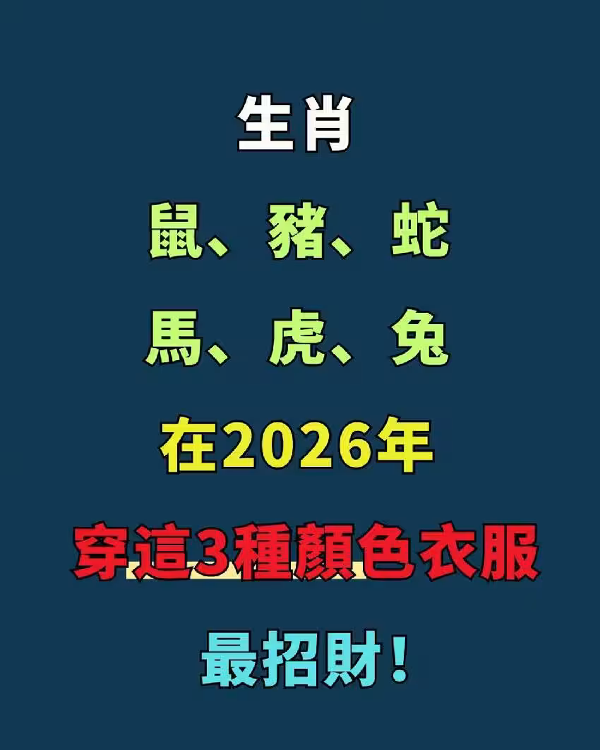 生肖鼠、豬、蛇、馬、虎、兔,在2026年穿這3種顏色衣服最招財!