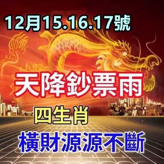 12月15.16.17號天降鈔票雨 ,橫財源源不斷的生肖 !