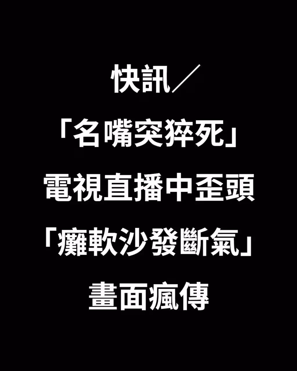 快訊/「名嘴突猝死」電視直播中 「歪頭癱軟沙發斷氣」 畫面瘋傳