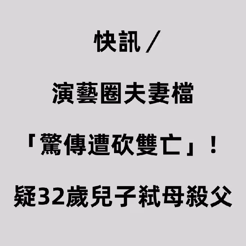 快訊/演藝圈夫妻檔「驚傳遭砍雙亡」!疑32歲兒子弒母殺父