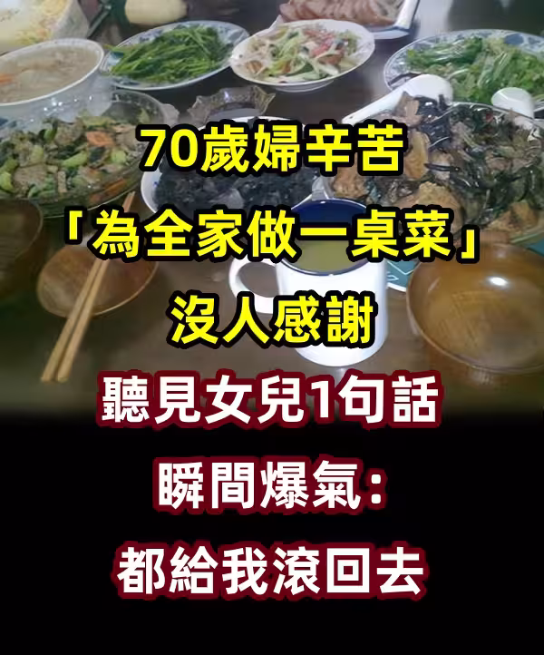 70歲婦辛苦「為全家做一桌菜」沒人感謝 聽見女兒1句話瞬間爆氣:都給我滾回去