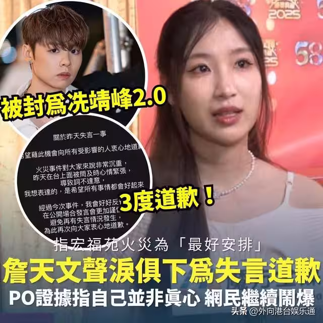 對此,詹天文迅速採取行動。她在Instagram發表限時動態對受災市民道歉,透露當時在台上因為過於緊張,導致口誤、詞不達意,其實真正想要表達的是希望所有事情好起來。