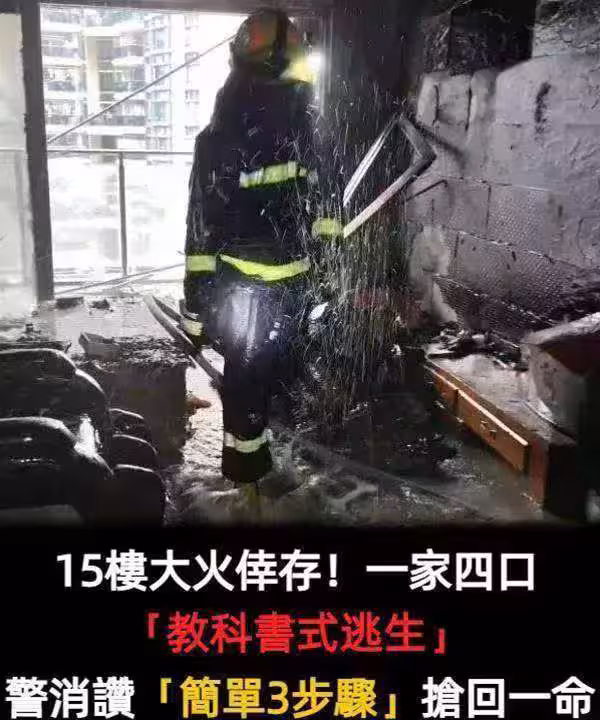 15樓大火倖存!一家四口「教科書式逃生」救難人員狂贊「簡單3步驟」搶回一命!