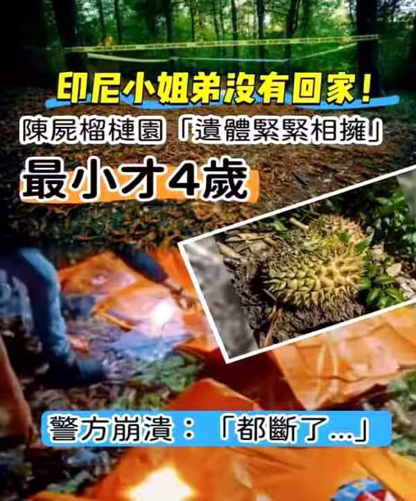 小姐弟沒有回家…陳屍榴槤園「遺體緊緊相擁」 最小才4歲 警方崩潰:「都斷了」!