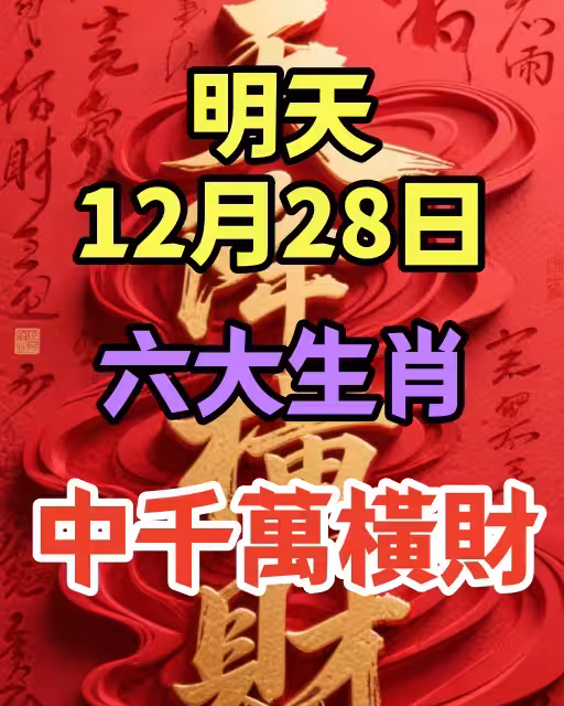 明天12月28日 六大生肖 中千萬橫財!