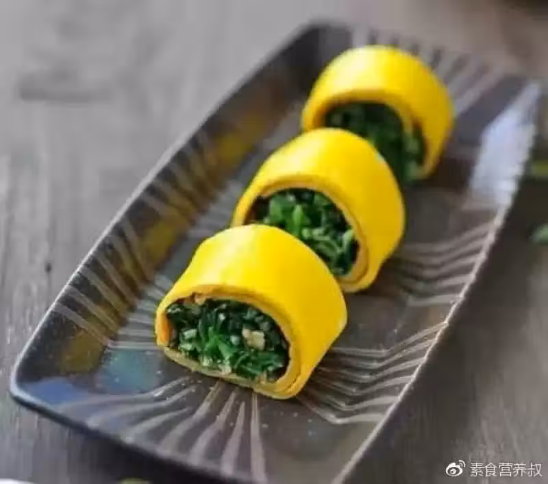 5、豆皮放鍋里油煎一下,鋪開,放上拌勻的馬蘭頭拌核桃,用手稍稍整形並捏緊。