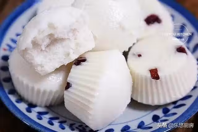 食材:粘米粉360克、普通麵粉100克、酵母粉5克、白糖10克、蔓越莓干適量。