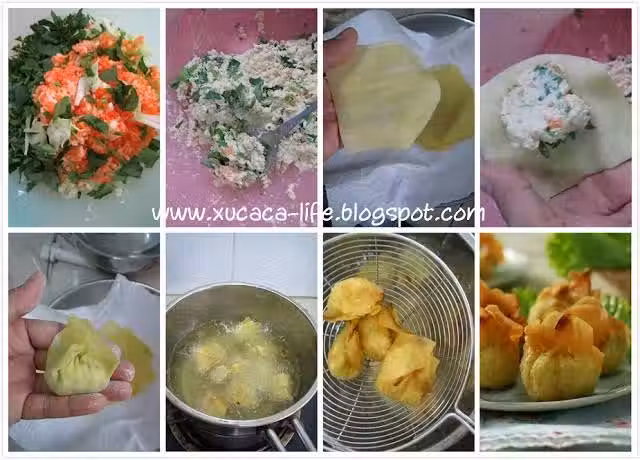 4)鍋子加了油燒熱後,把雲吞放入炸至金黃色即可撈起把油濾干待享用。