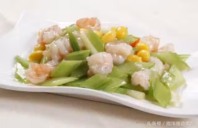 食材:蝦仁 200克、西芹 200克、胡蘿蔔 半根、蔥、姜 少許、料酒、鹽、雞精。