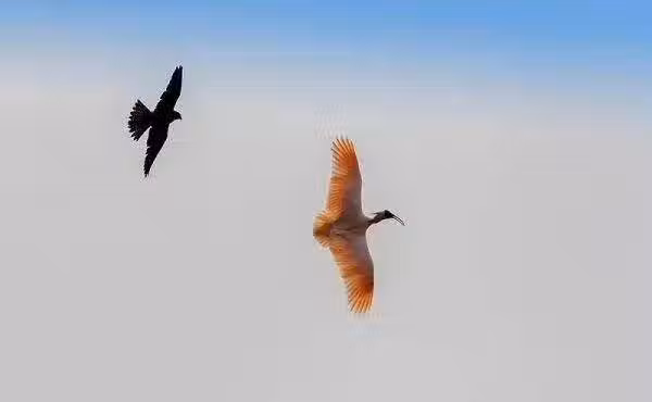 游隼追殺朱䴉。換句話說就是,國家二級保護動物正在追殺國家一級保護動物。