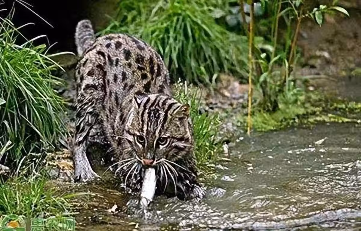 漁貓捕食游魚。顧名思義,漁貓是專門吃魚的一種貓科動物,它的腳上有蹼。