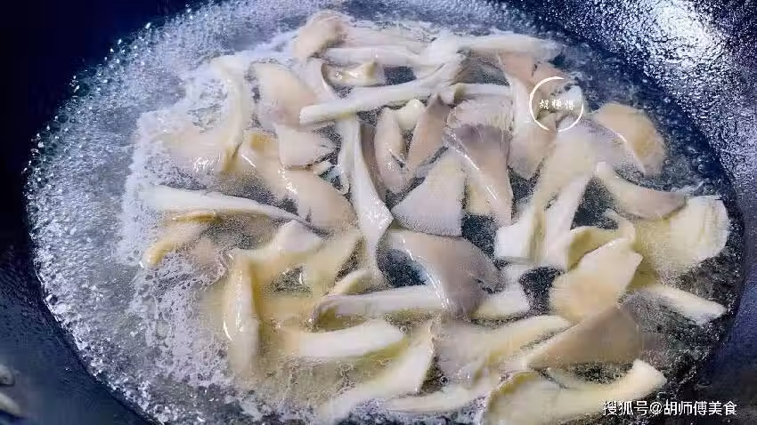 第三步:鍋中放入適量的水,大火將水煮開後,把平菇放入到鍋中大火煮1分鐘,然後撒入少許食鹽、雞精在鍋中。