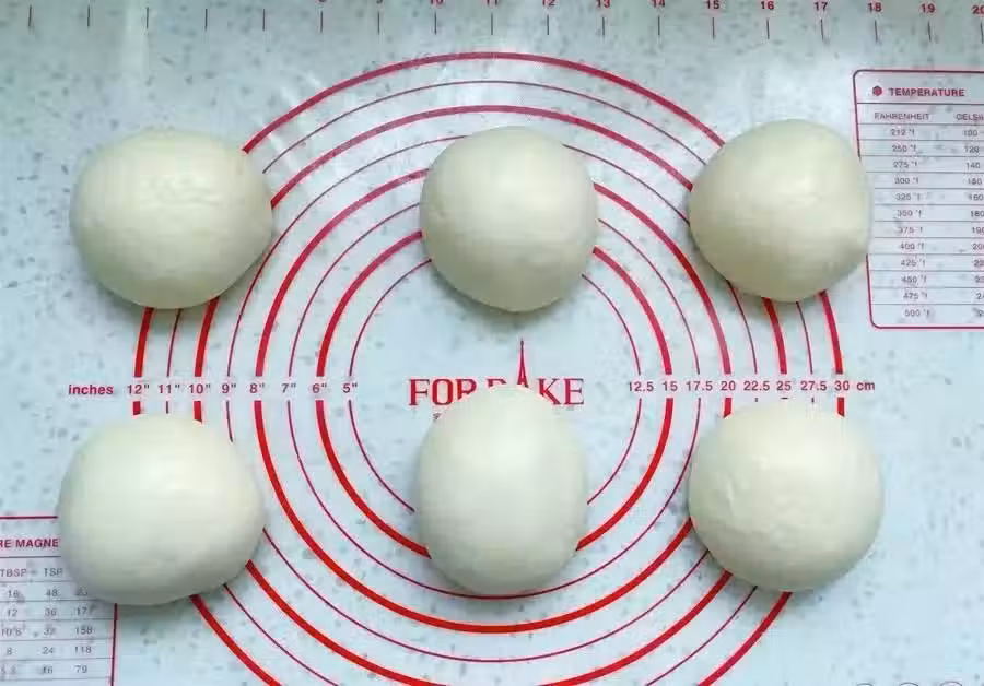 9、取一個麵團,用擀麵杖擀成長方形(寬約18公分)面片,拍去麵團邊緣的大氣泡。