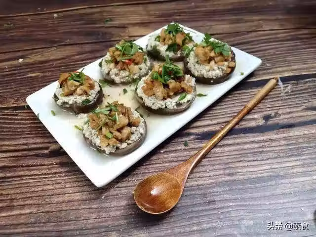 6.香菇擺盤,依次放入豆腐泥和炒好的大豆蛋白,最後撒上歐芹沫即可