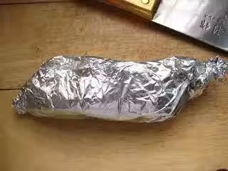 11. 剩下的另一半用錫紙包好。放入烤箱,用200度烤35分鐘,取出切片。