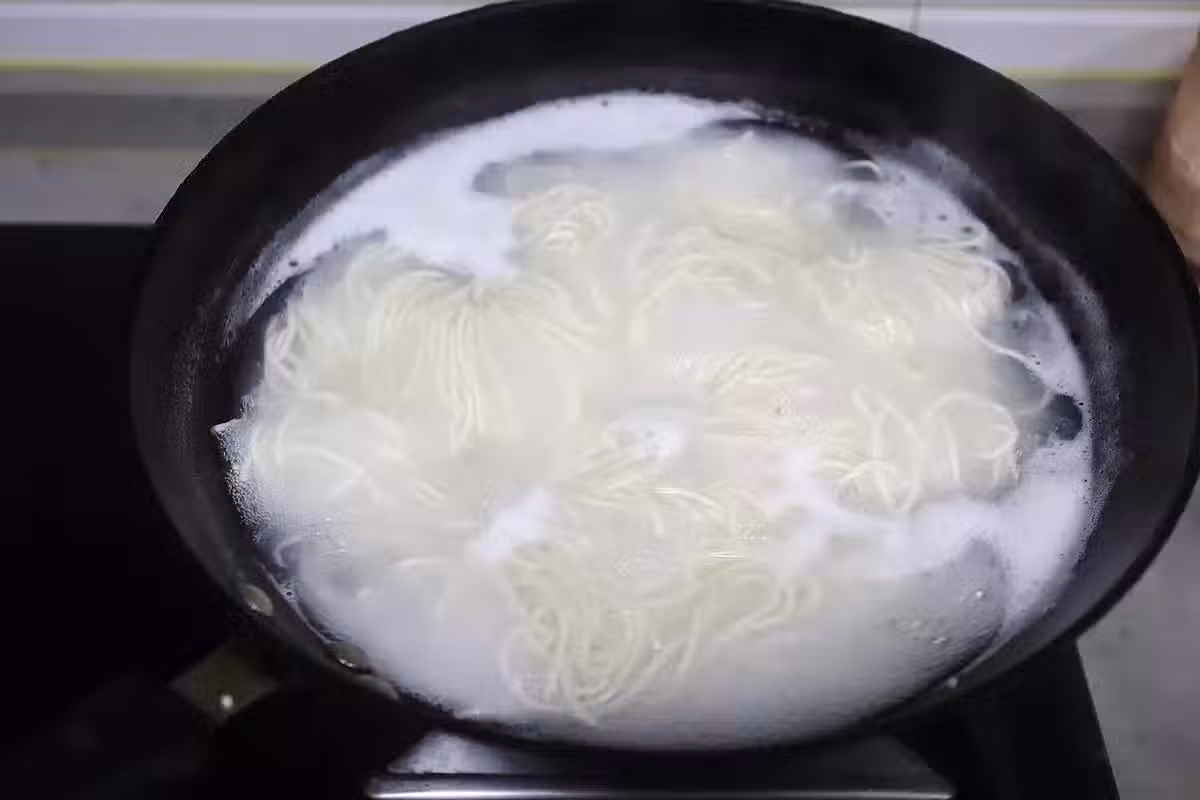 7. 煮到沒有白芯時,撈出用涼水過涼;