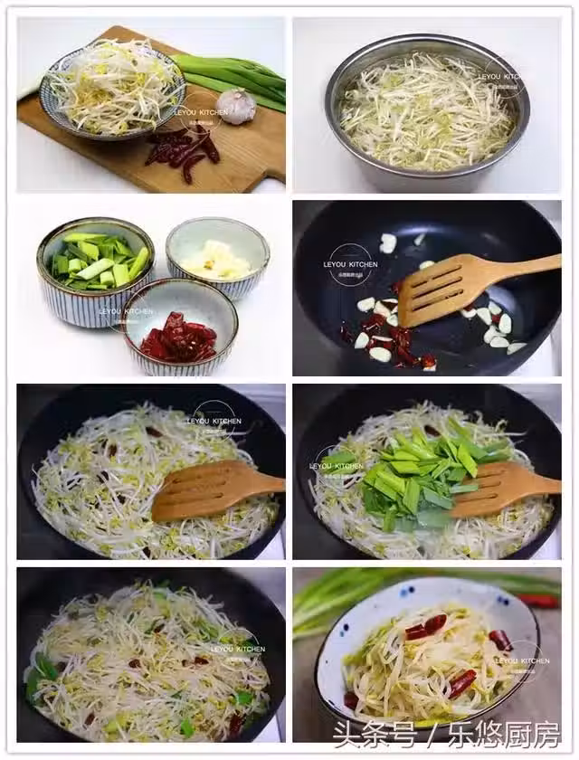 第五步:將綠豆芽放入鍋中煸炒1分鐘。